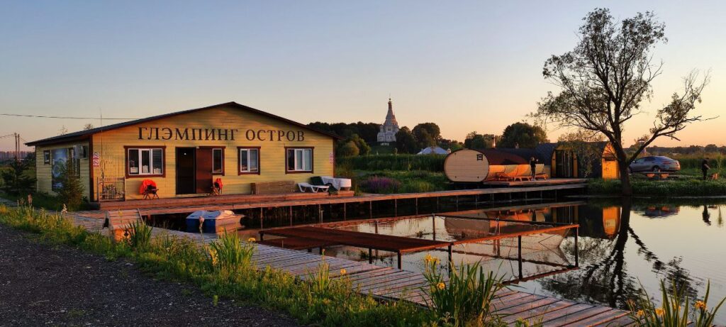 Здесь есть всё для комфорта каждого гостя: Мини-магазин и кафе в здании администрации Глэмпинга. Территория кемпинга для ваших палаток и кэмперов на берегу реки Москвы. Беседки для рыбалки с великолепными видами на озеро «Копыто» Подарите себе и своим близким незабываемый отдых в Глэмпинг парк – отеля «Остров» — месте, где природа встречается с роскошью, а традиции — с современным комфортом.Ваш идеальный отдых начинается здесь.